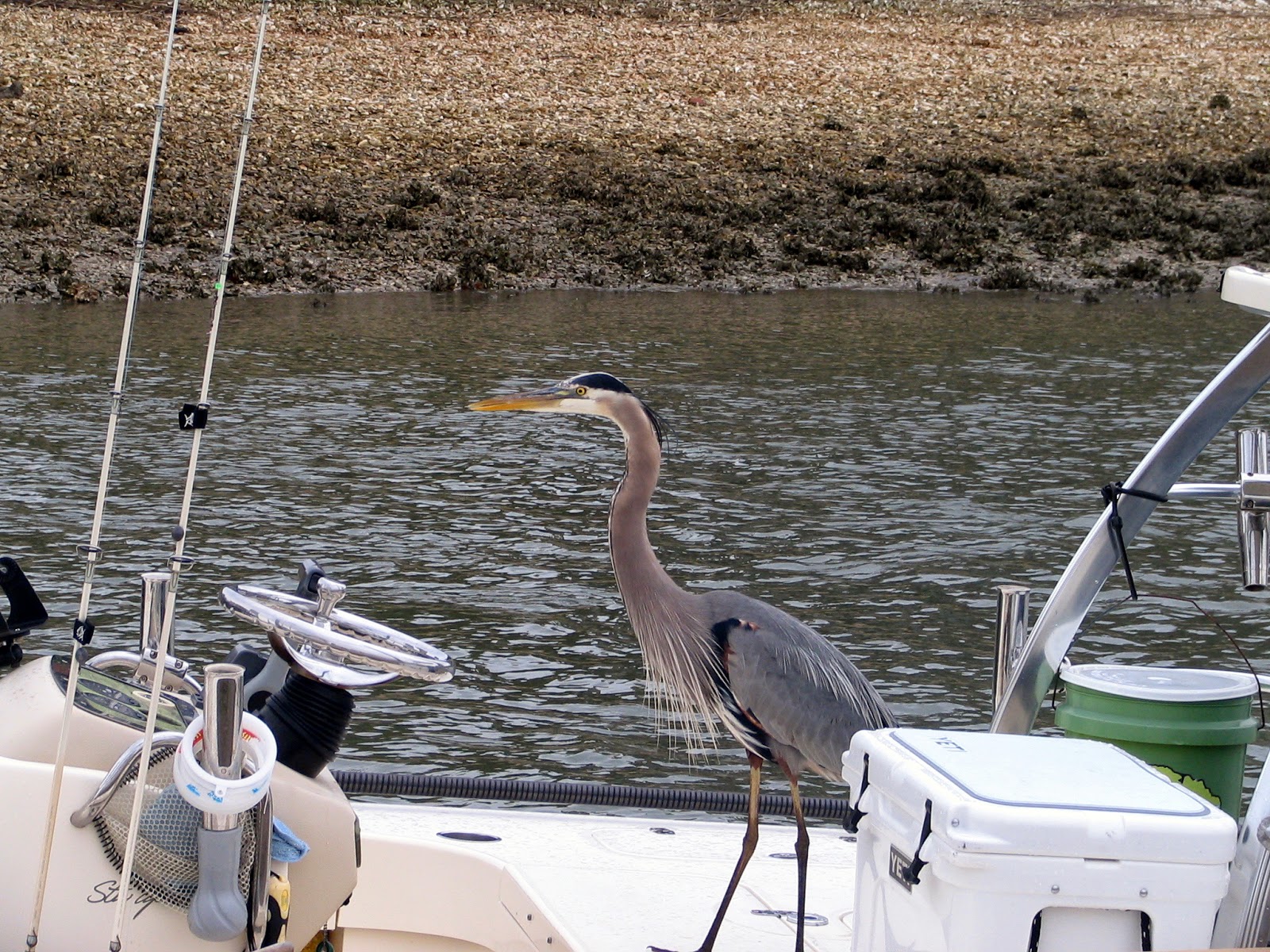 There was also a friendly blue heron walking the dock, looking for